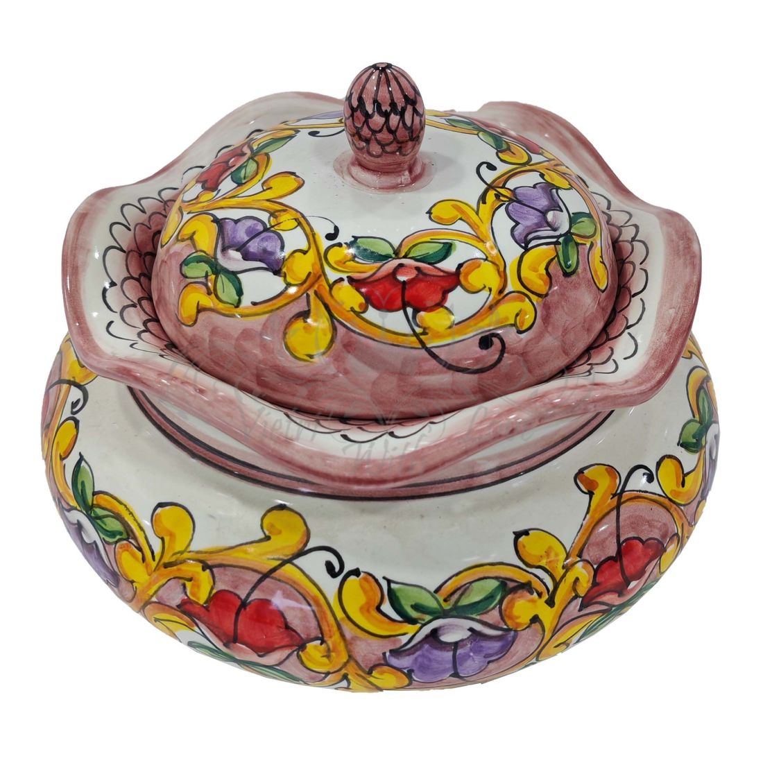 Keksdose aus der Linie Barock und Blumen. Handbemalte Vietri-Keramik.