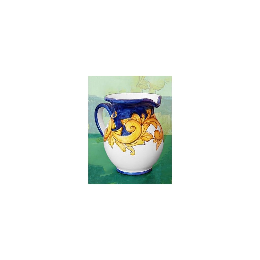 Brocca linea barocco bordo Rosso Vecchio. Ceramica di Vietri dipinta a mano.