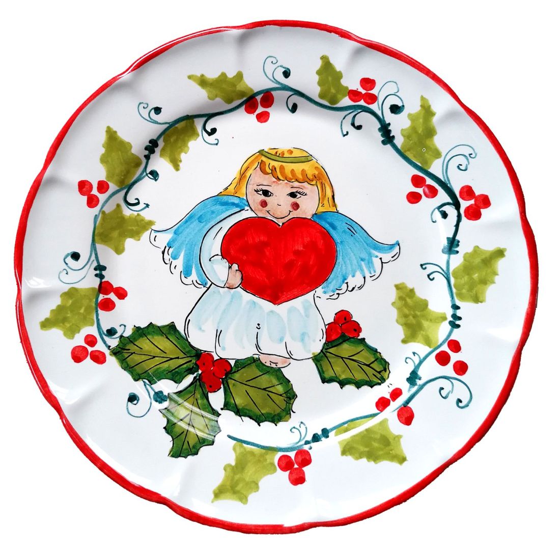 Piatto linea Natale, in ceramica vietrese fondo, piano, frutta/dolce o sottopiatto