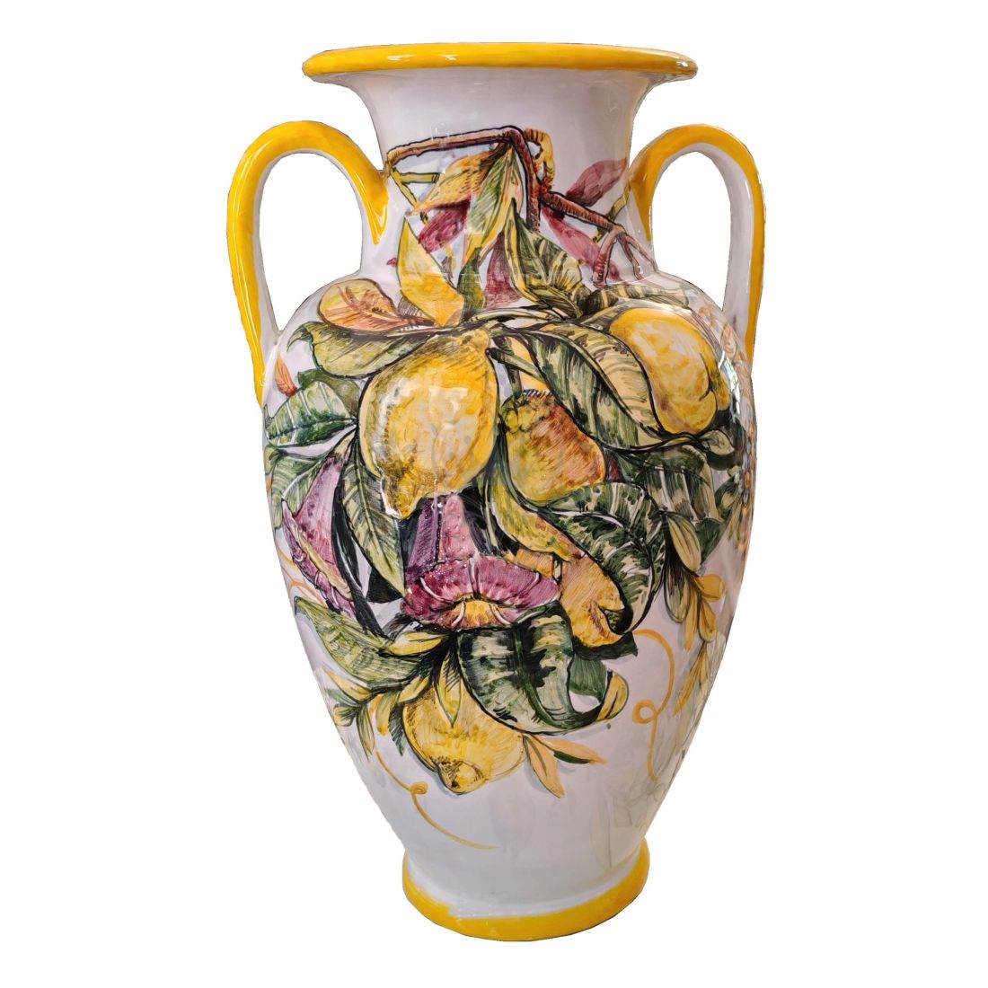Schirmständervase mit glattem Rand und weißem Boden, Linie Limoni, aus handbemalter Vietri-Keramik.