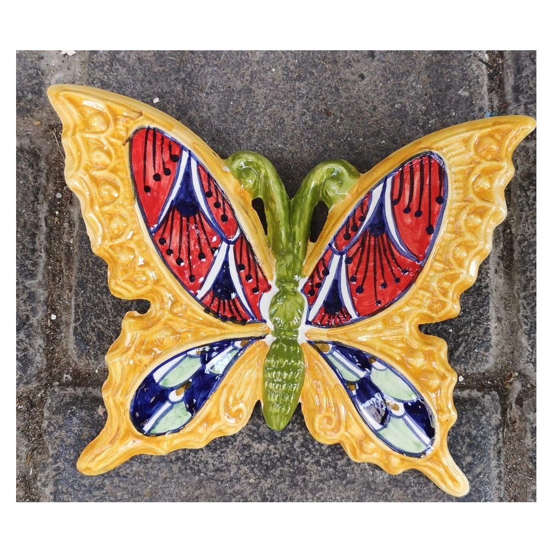 Farfalla colorata fondo arancio in Ceramica di vietri dipinta a mano. disponibili in diverse dimensioni