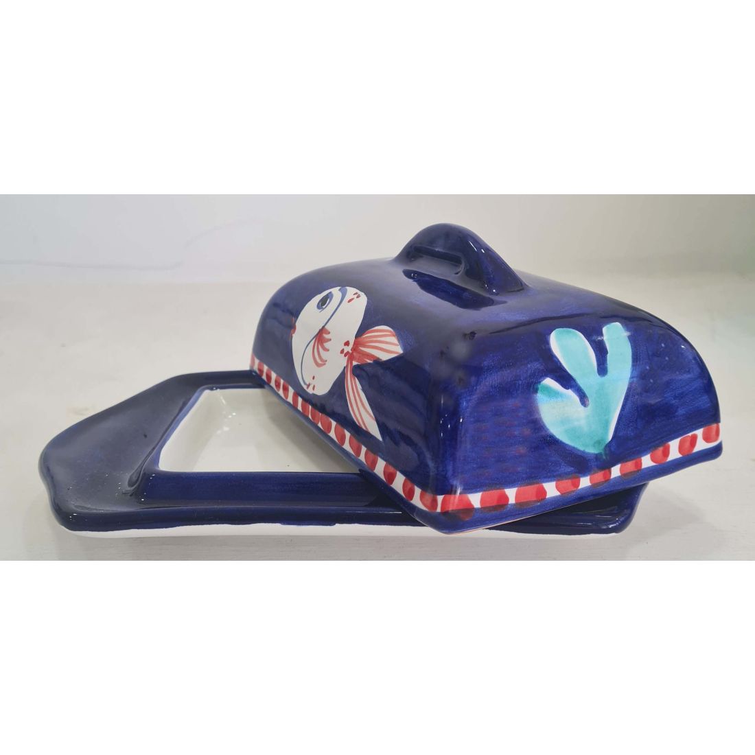 Vassoio rettangolare fondo bianco decoro frutta. Ceramica di Vietri dipinta a mano.