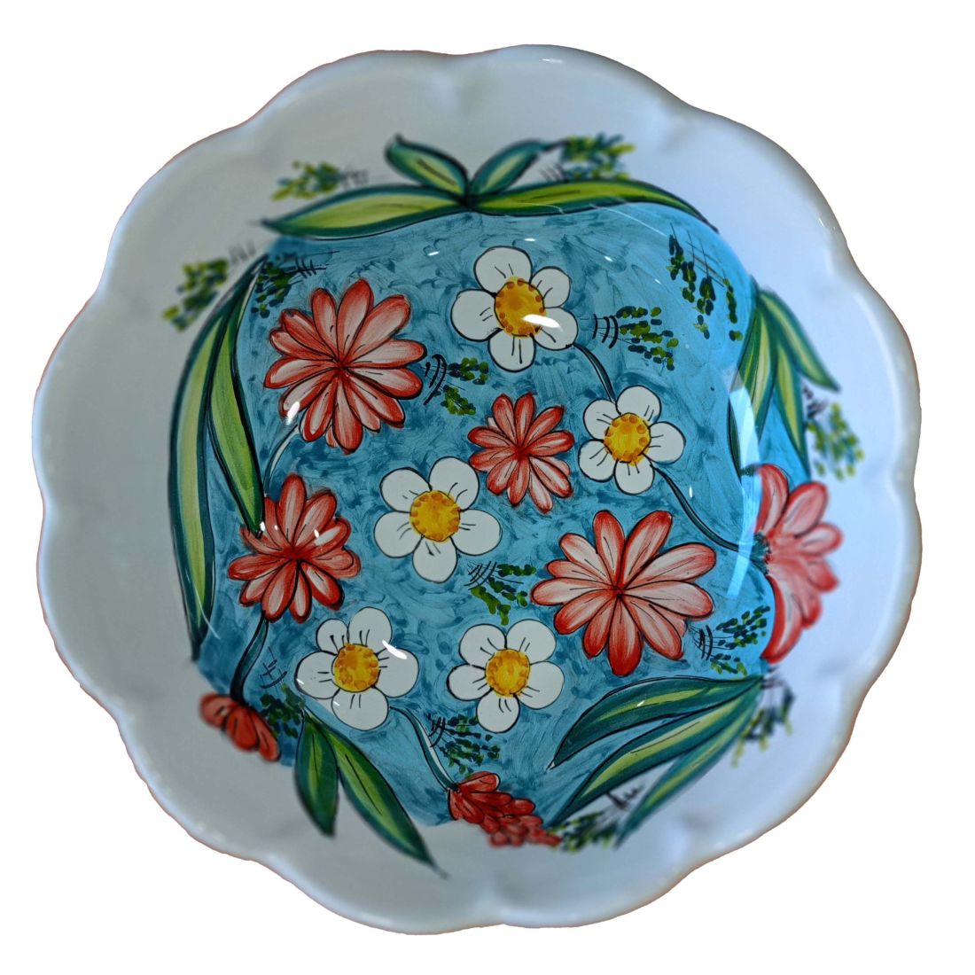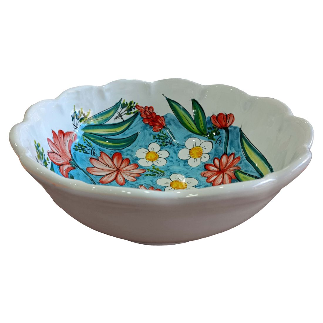 Salatschüssel mit Wellenschliff. Handbemalte Vietri-Keramikblumenlinie