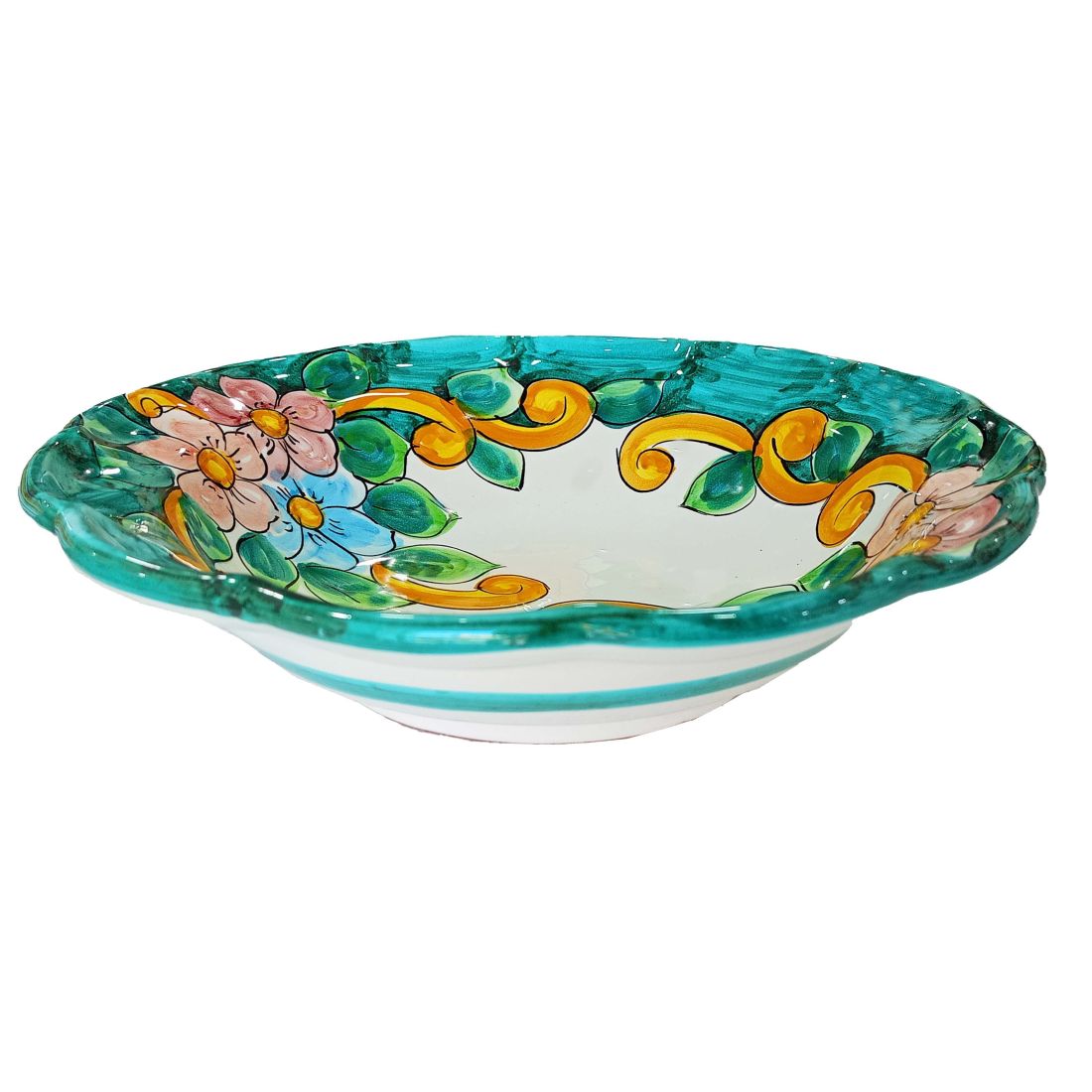Salatschüssel mit Wellenschliff. Handbemalte Vietri-Keramik Barock linie