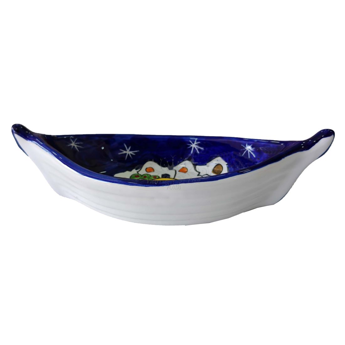 Platte in Bootsform. Positano Häuserlinie. Handbemalte Vietri-Keramik.