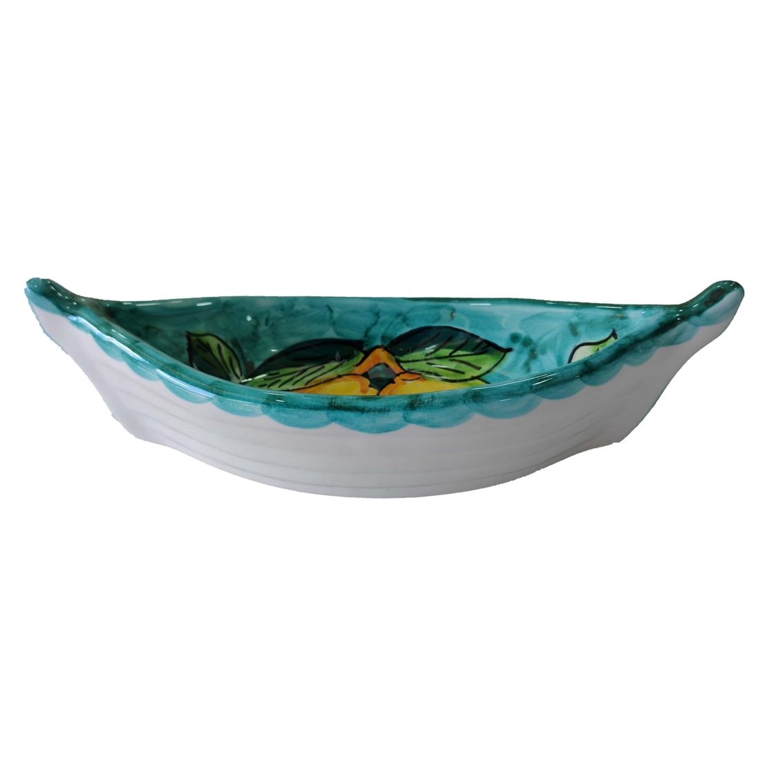 Platte in Bootsform. Zitronenlinie. Handbemalte Vietri-Keramik.