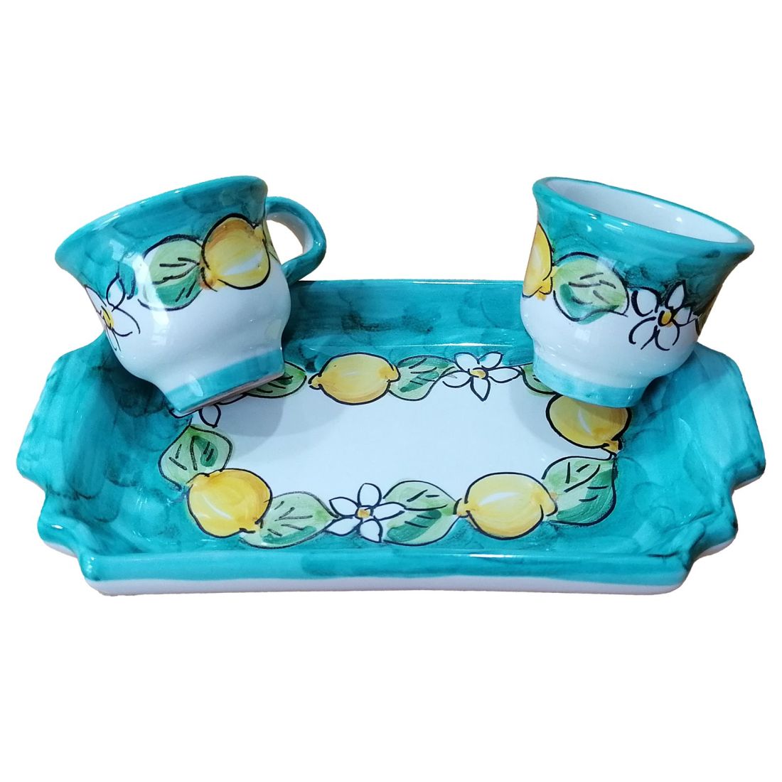Kaffee-Tassen- und Tablett-Set „Tet-a-Tet“ Geschenk. Linie Zitronen. Vietri Keramik.