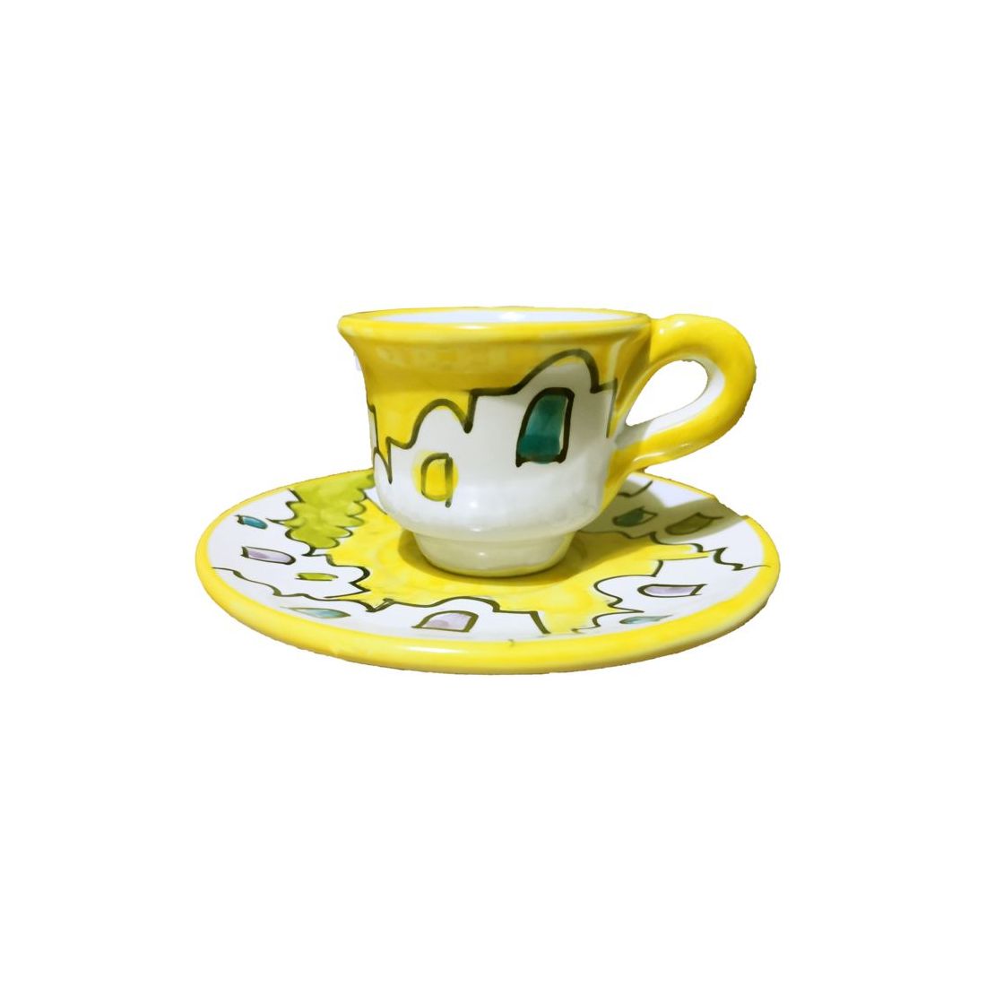 Kaffeetasse mit Untertasse aus Vietri-Keramik, handbemalt, Eleganz und italienisches Kunsthandwerk.