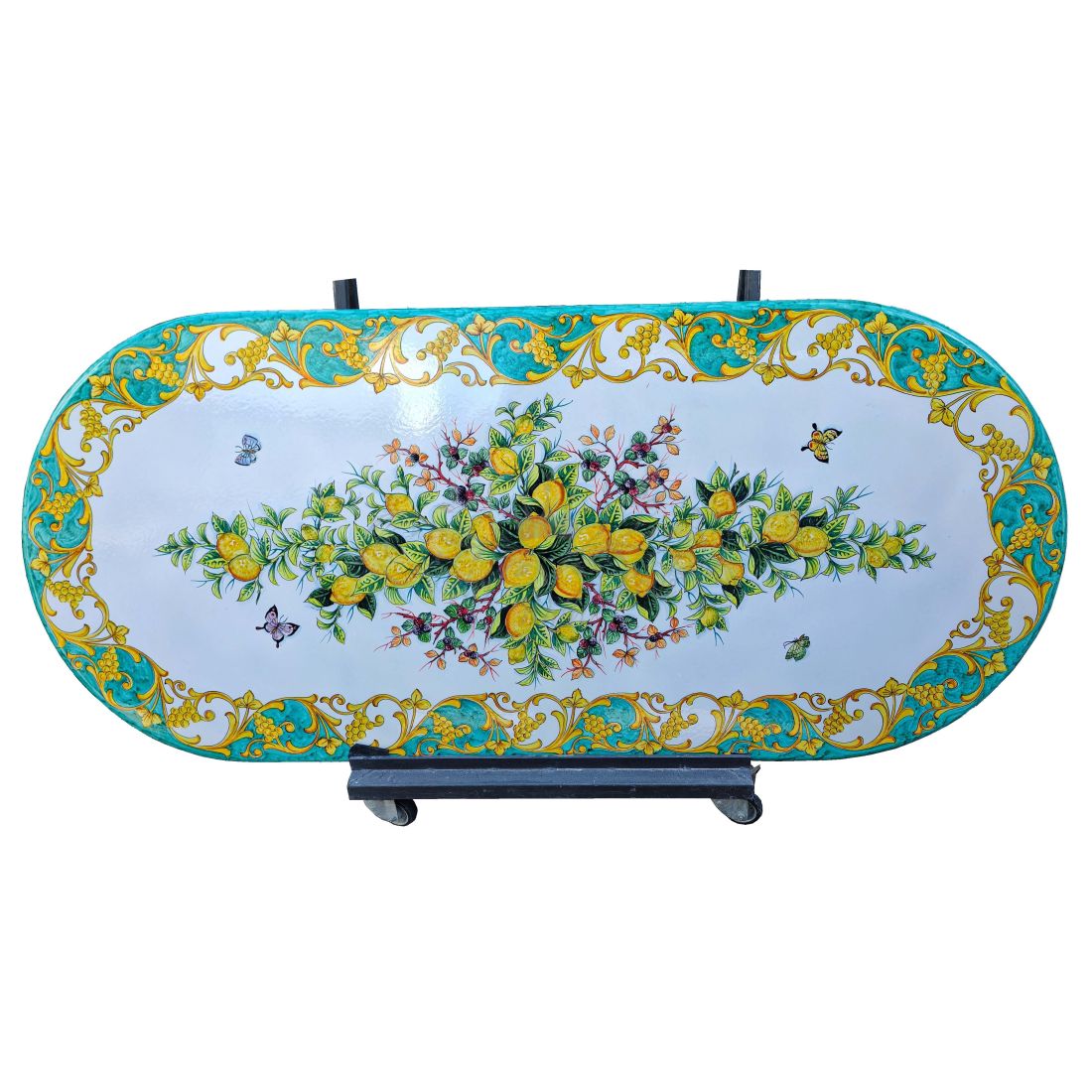 Tisch aus glasierter Lavastein. Barock & Zitronen. Handbemalt. Vietri-Keramik.