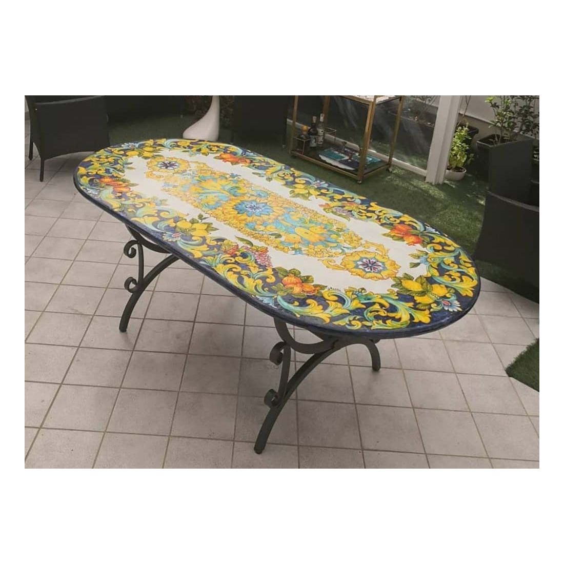 Eleganter und robuster handgefertigter Tisch aus Ätna-Lavastein, glasiert und handbemalt von Meisterhandwerkern mit den Farben und der Tradition der Amalfiküste.