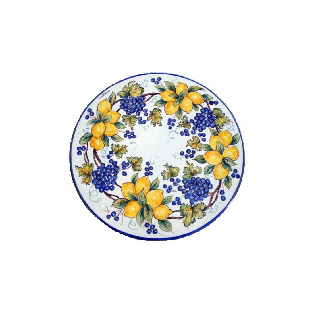 Keramisierter Lavasteintisch. Trauben und Zitronen. Handbemalt. Vietri-Keramik.