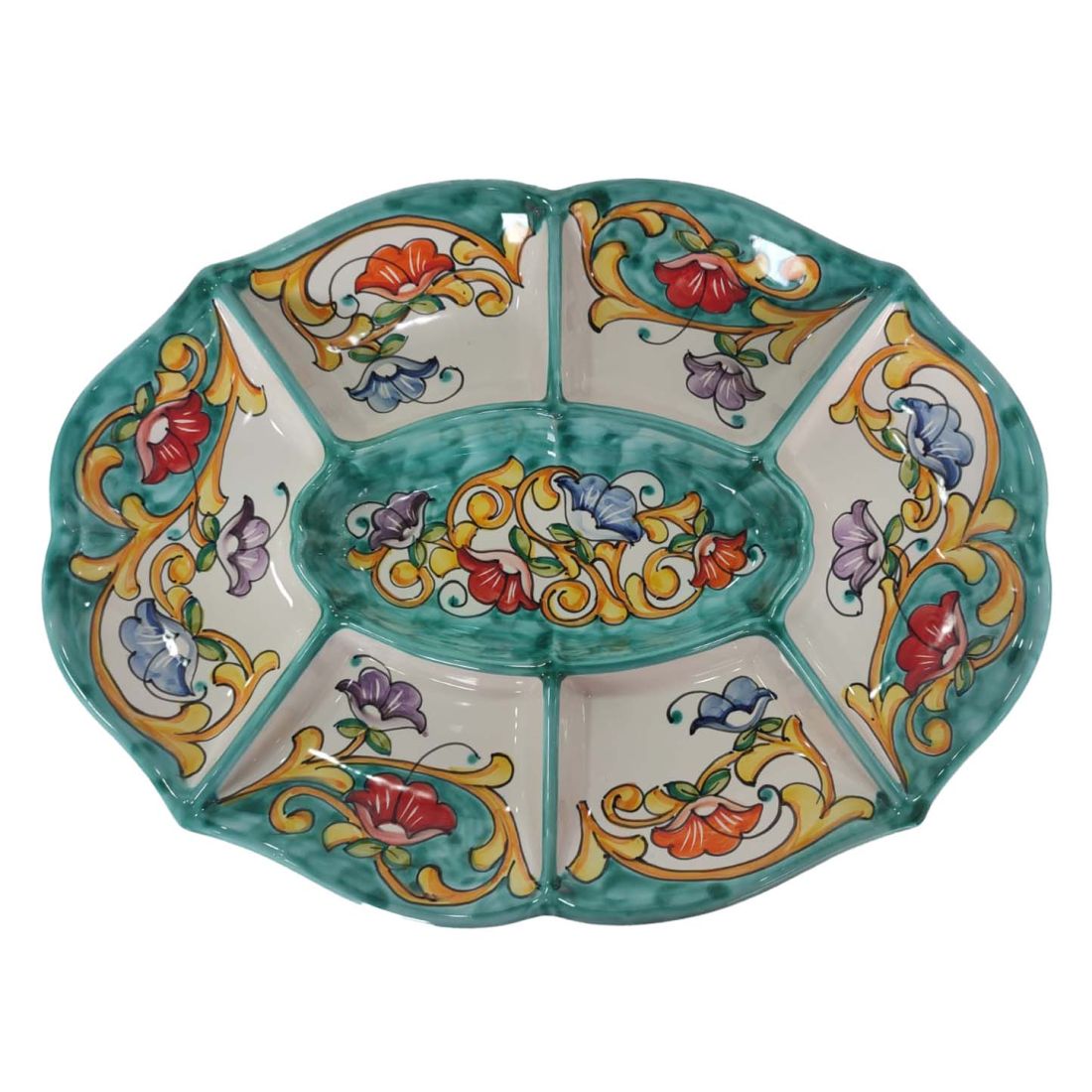 Appetizer Platter. Cold Dinner. 7 Compartments. Baroque & Flowers Line. Vietri Ceramic. Hand-Painted.