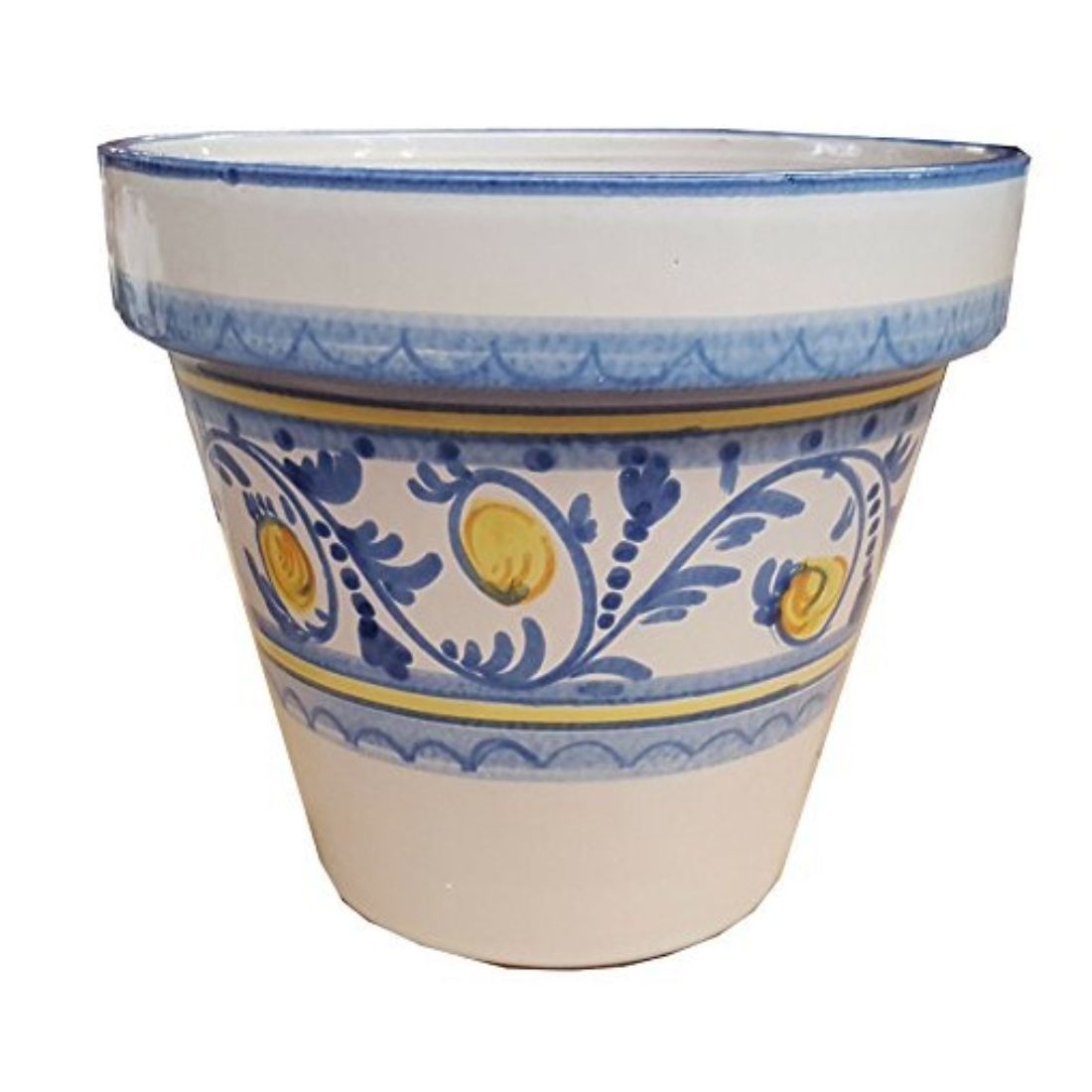 Conical pot for plants white Background decoro Blu. handpainted Vietri ceramic