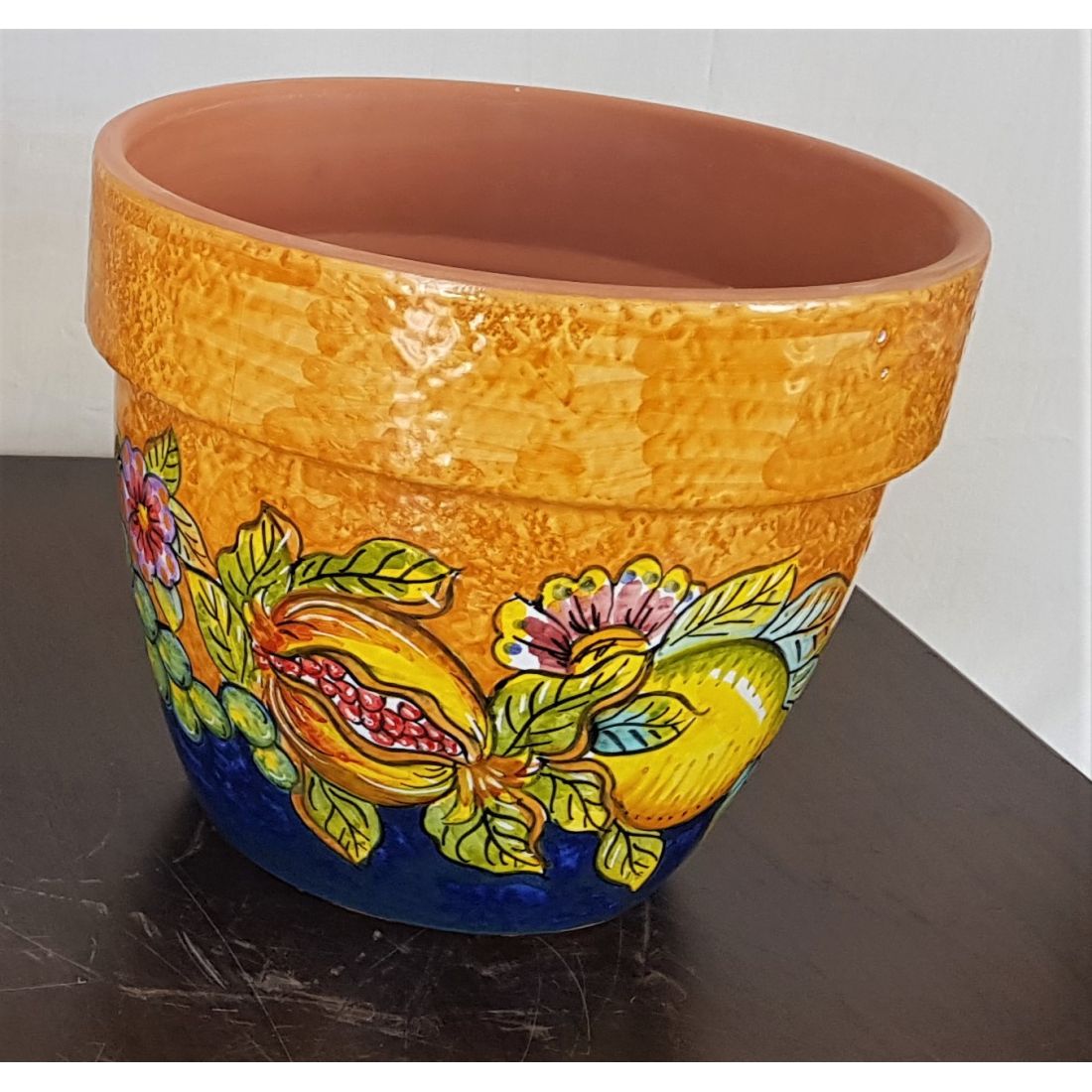 Conical pot for plants orange frutta. handpainted Vietri ceramic