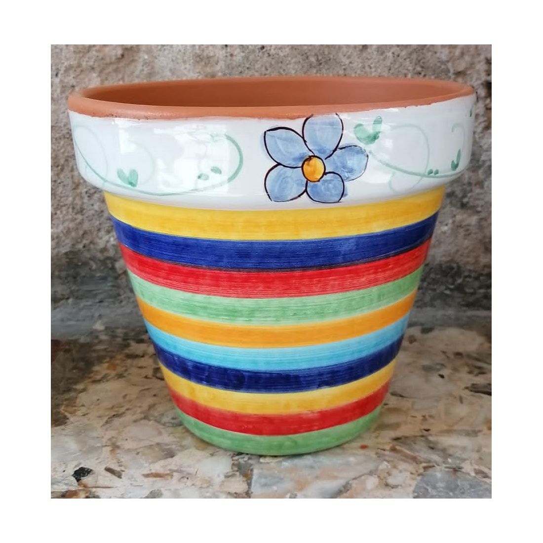 Conical pot for plants righe colorate. handpainted Vietri ceramic