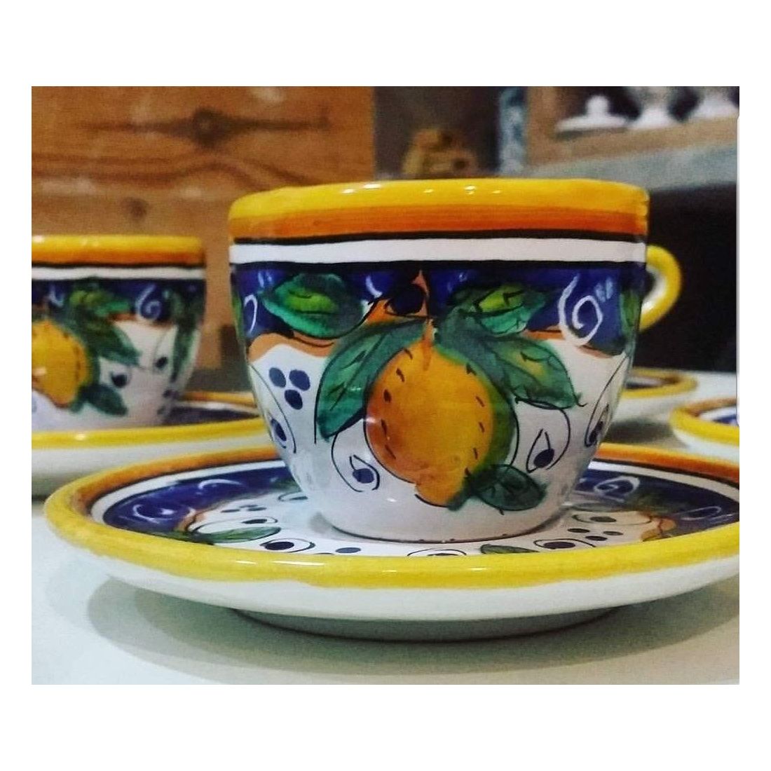 Coffee cup with saucer in Vietri ceramic, hand-painted, elegance and Italian artisan craft.