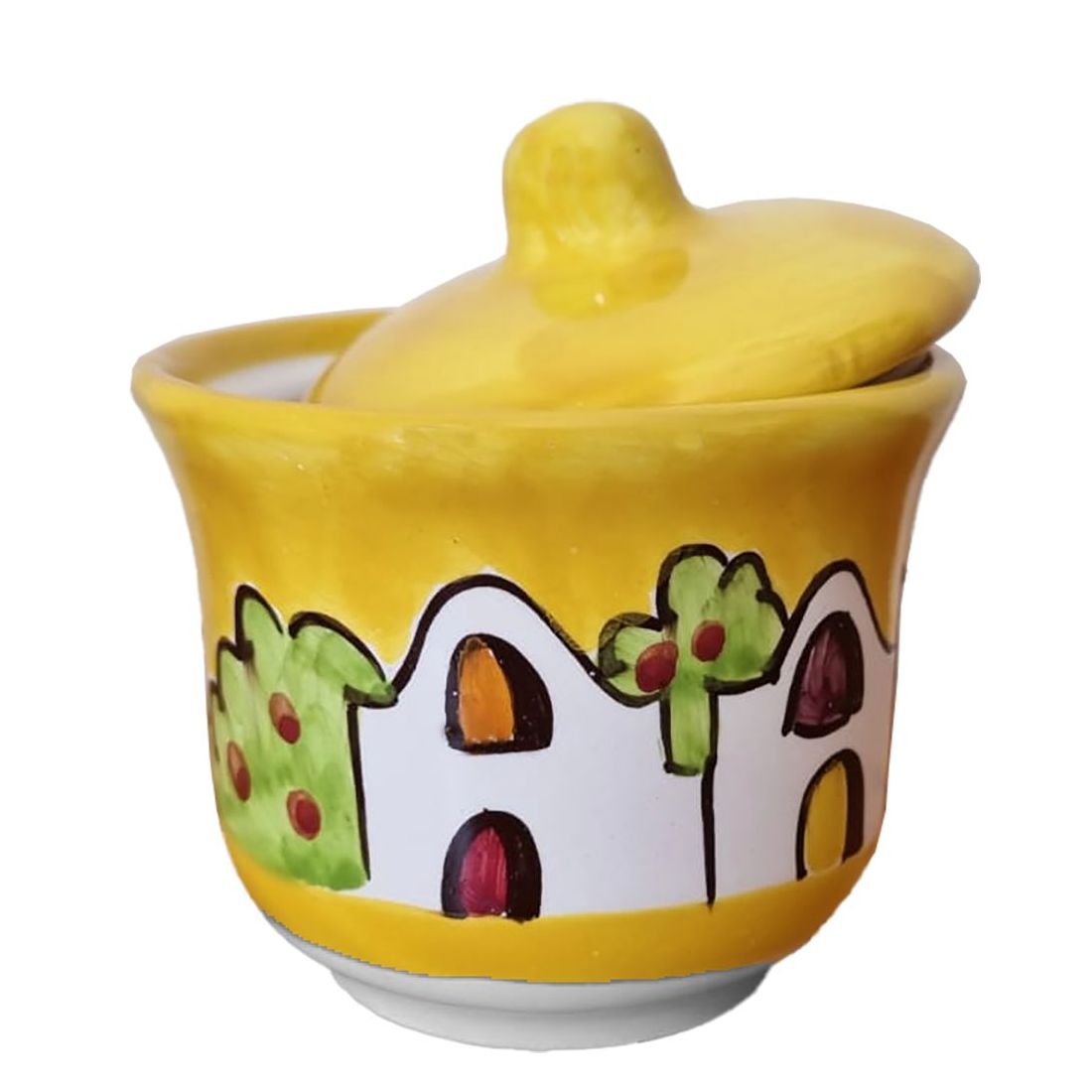 Sugar bowl. Houses line. Hand-painted Vietri ceramic