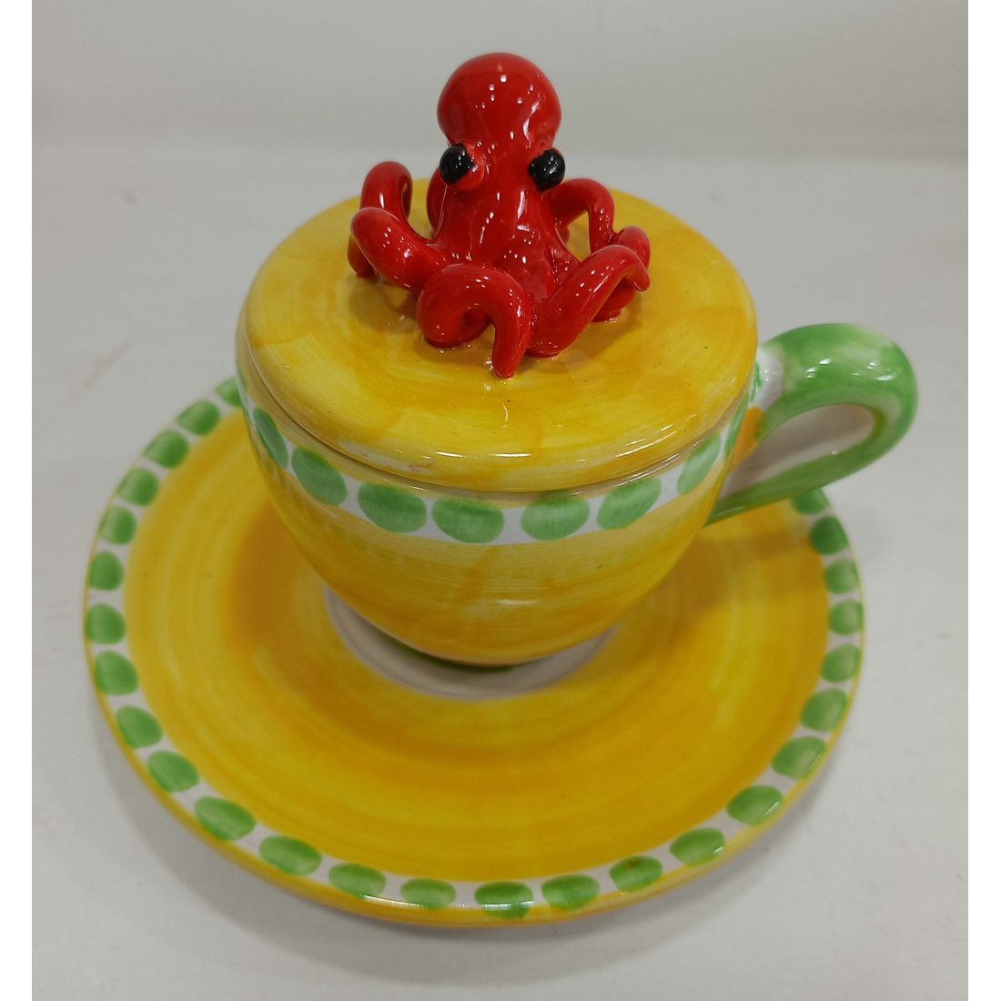 Set of coffee cup and saucer. Little Animals line. Vietri ceramics. Hand-painted.