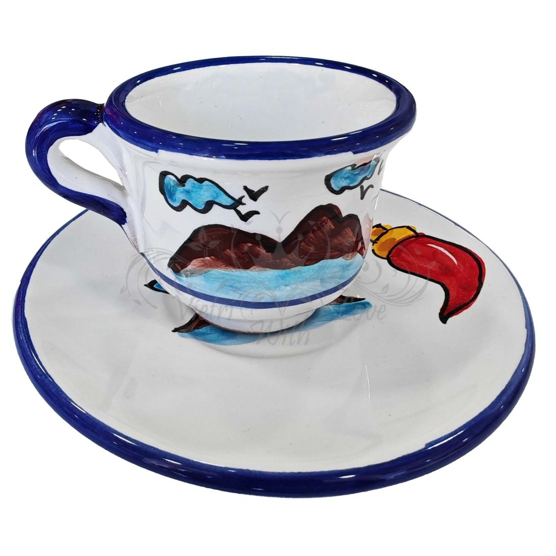 Coffee cup with saucer. Naples Line. Vietri ceramic. Hand-painted.