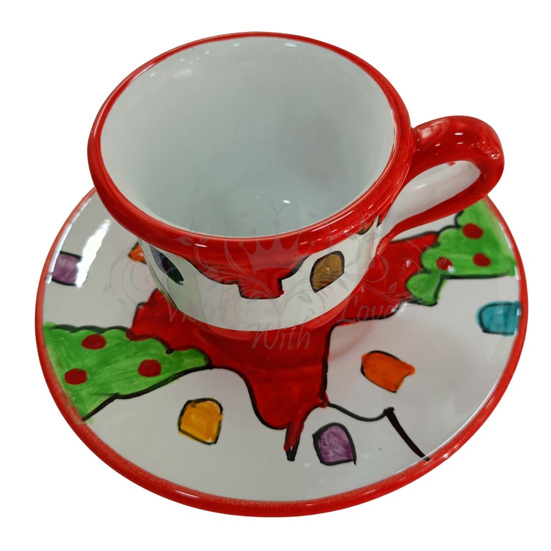 Coffee cup with saucer in Vietri ceramic, hand-painted, elegance and Italian artisan craft.