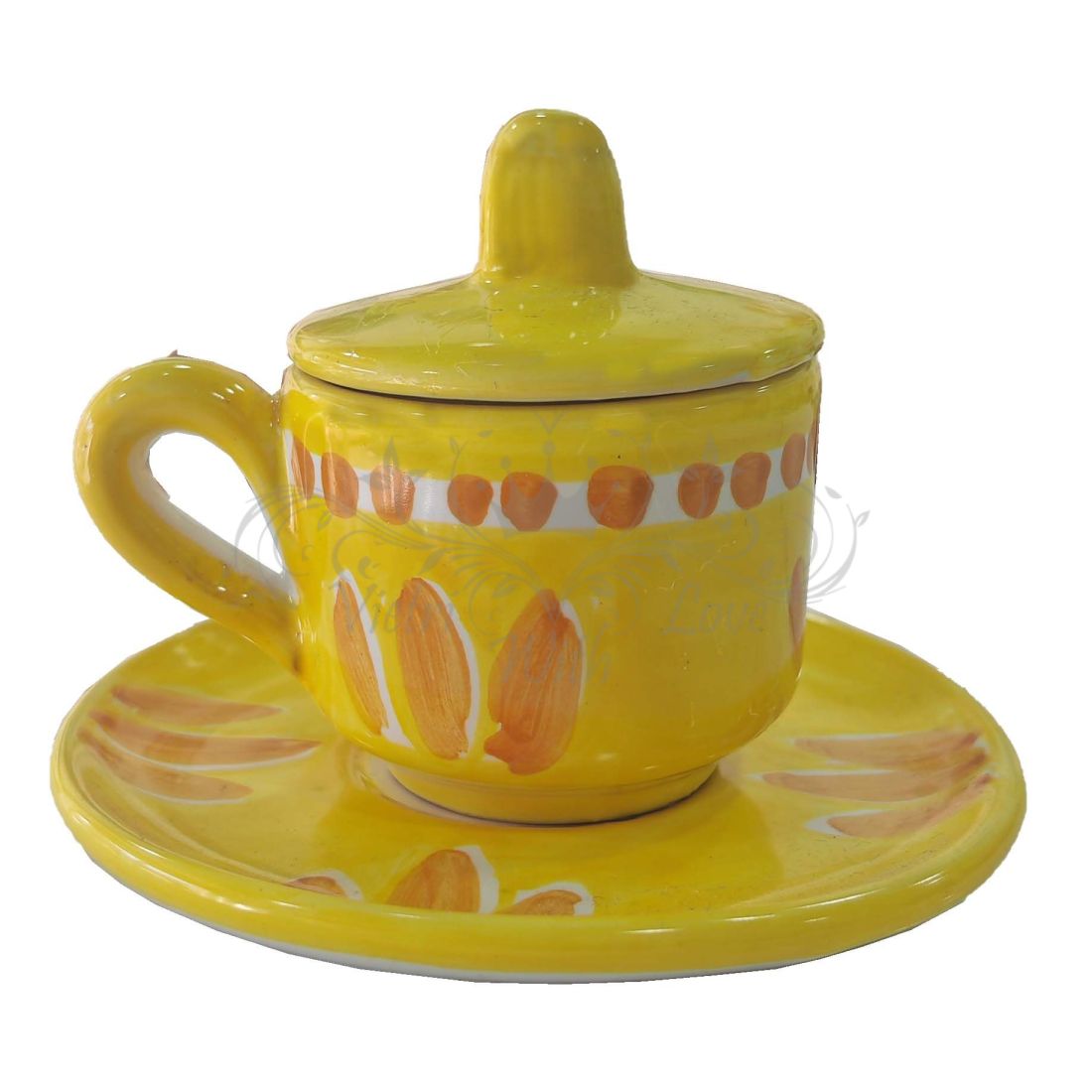 Hand-painted Vietri ceramic espresso cup with saucer and lid, elegance and Italian artisan craftsmanship.