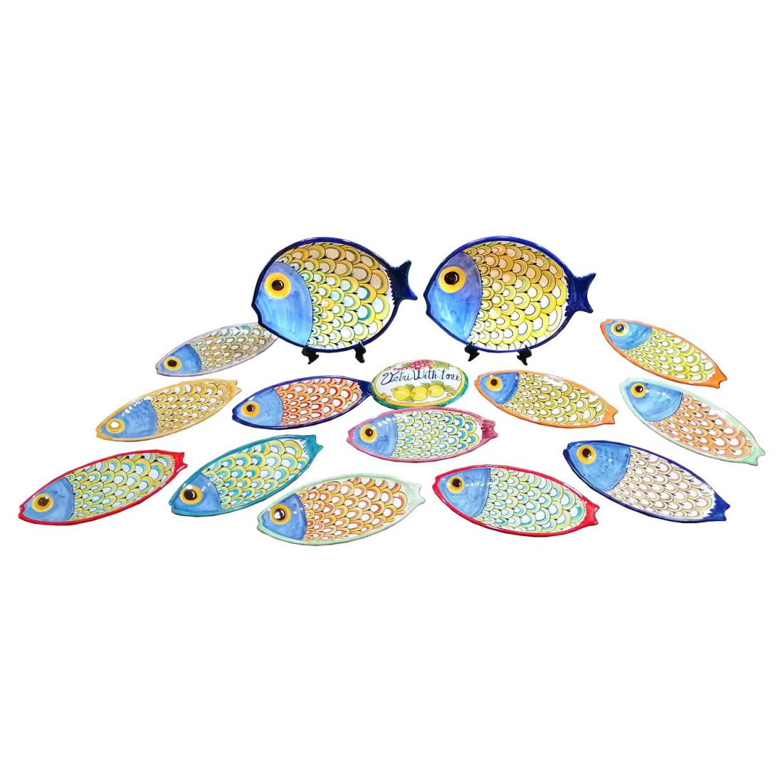 Fish-shaped plate. Vietri ceramic. Hand-painted.
