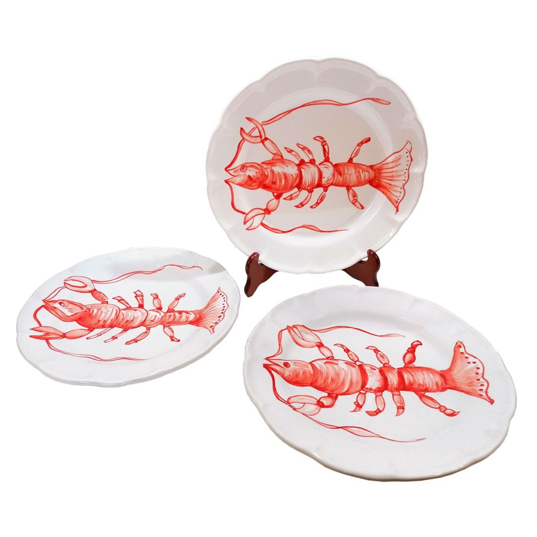 Dishes, Plates handpainted Vietri ceramic Sea Line. lobster Soup, Dinner and fruit plate