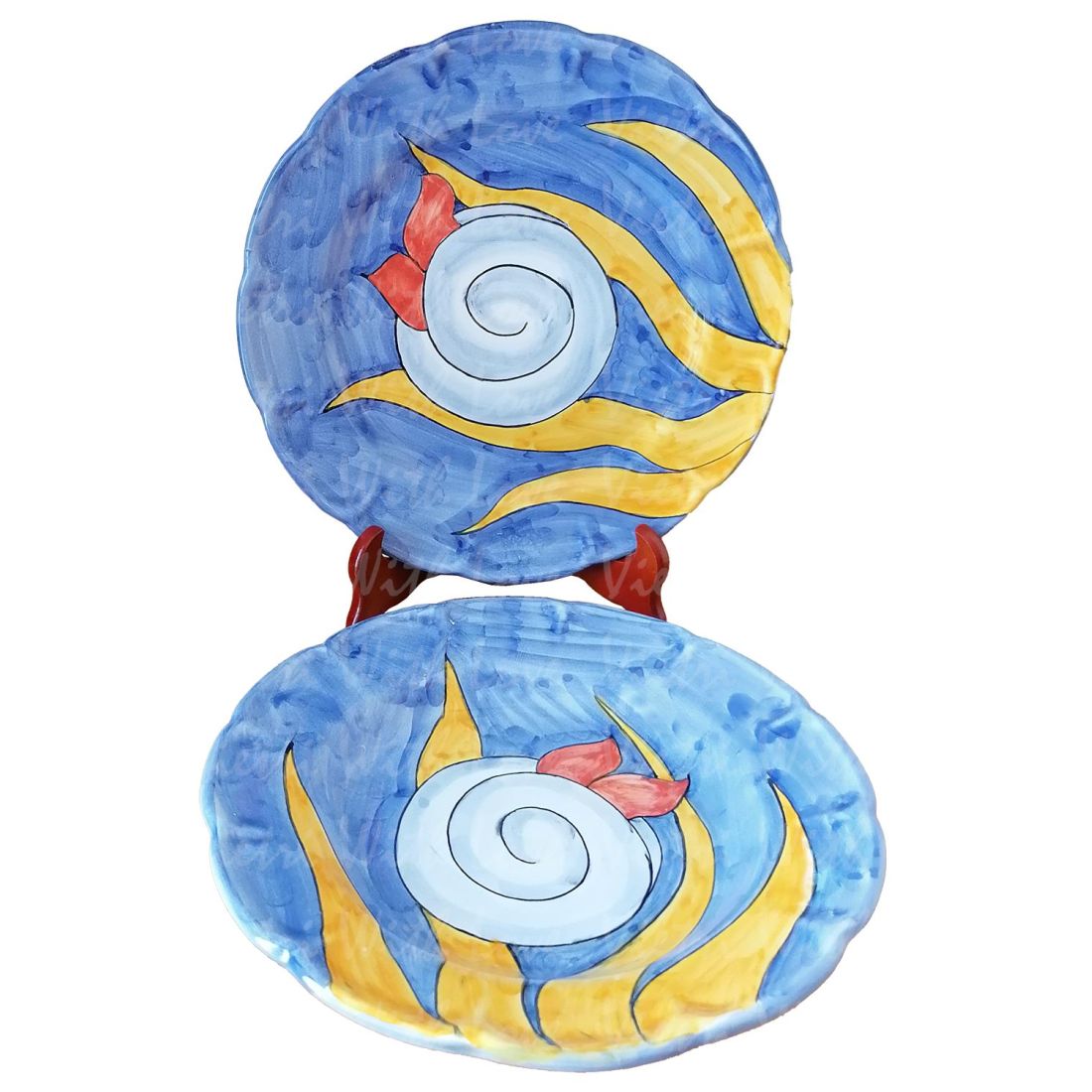 Dishes, Plates fishes line, handpainted in Vietri ceramic dinner plate, soup plate