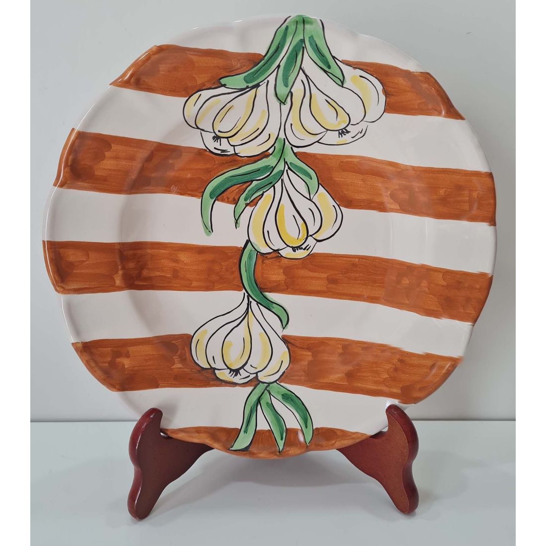 Dish, plate coloured lines garlic. handpainted in Vietri ceramic dinner, fruit/dessert underplate