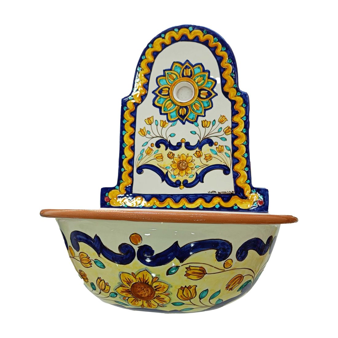 Wall garden fountain with tub. Baroque and Flowers line. handpainted Vietri ceramic