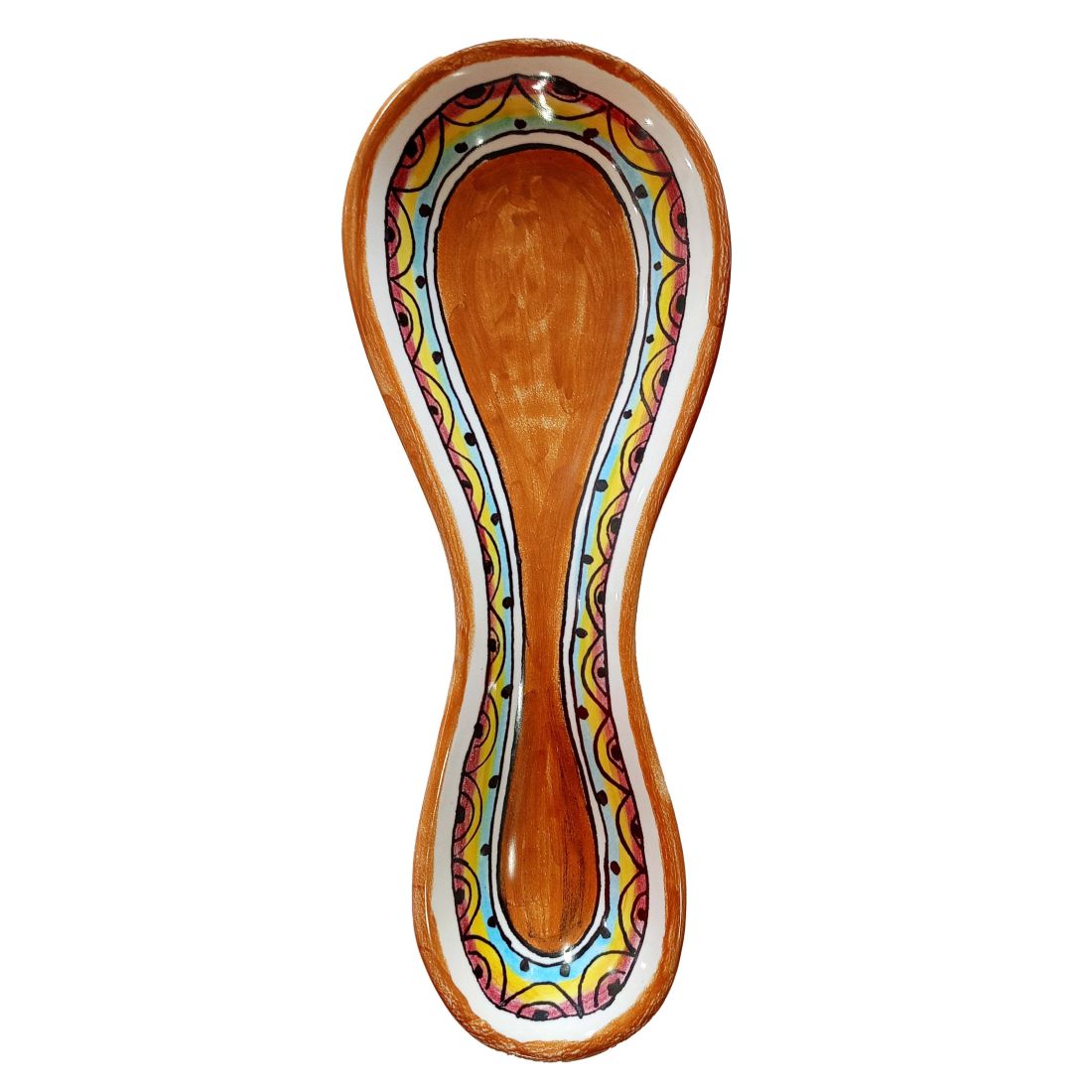 Spoon rest geometric line orange. handpainted Vietri ceramic