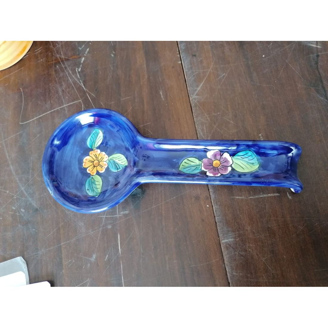 Spoon rest ROMA blue flower line. handpainted Vietri ceramic