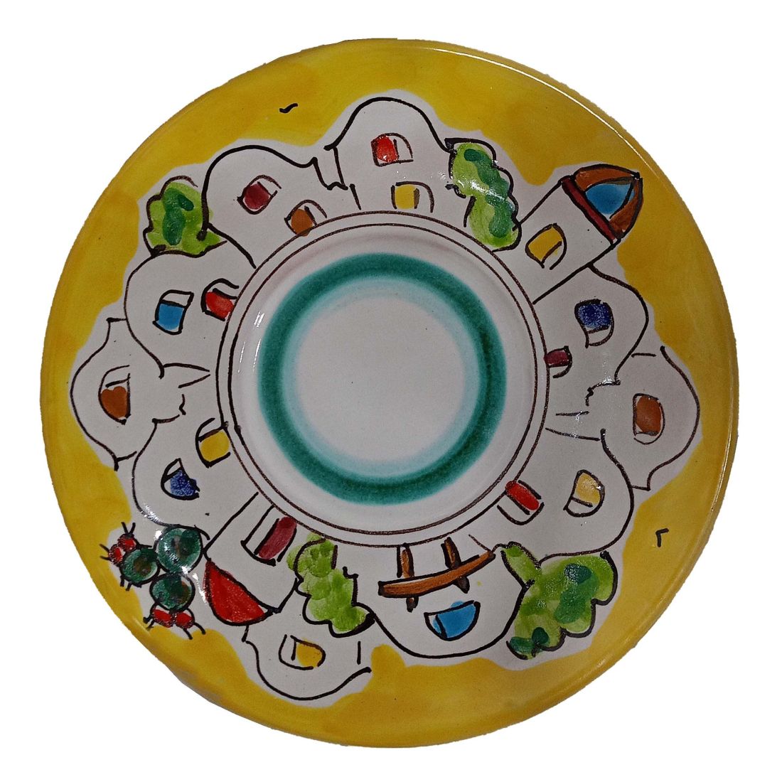 Tray with 12 cups and sugar bowl. Little Houses line. Vietri ceramic. Hand-painted.