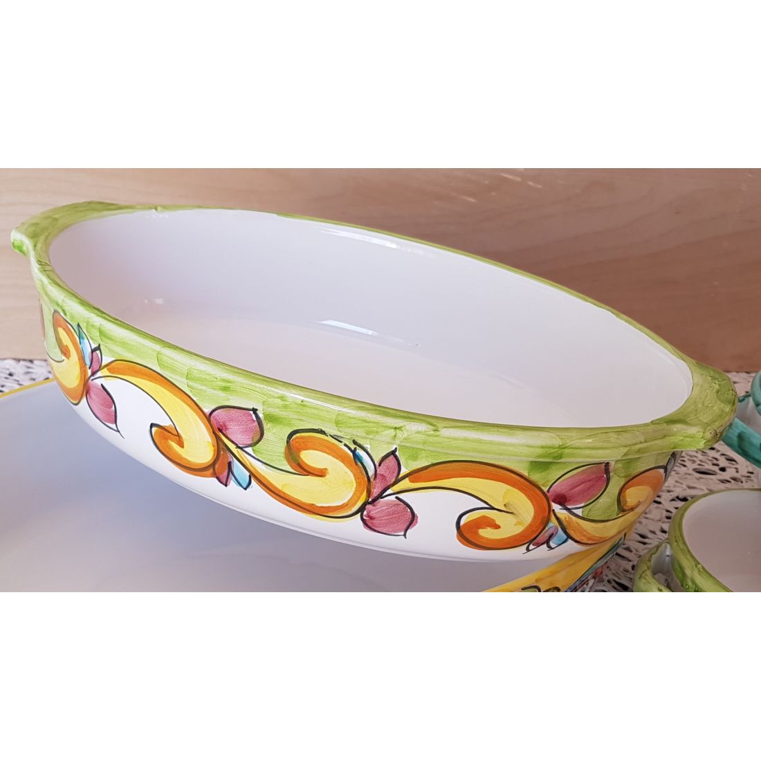 Oval serving dish or bowl. Baroque and Flowers line. Vietri ceramic. Hand-painted.