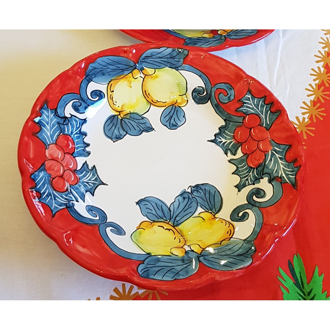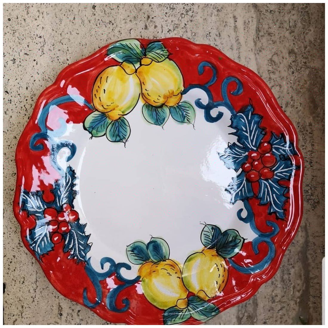 Christmas plate, lemon and holly line. Vietri ceramic. Flat, soup, dessert or charger plate available.