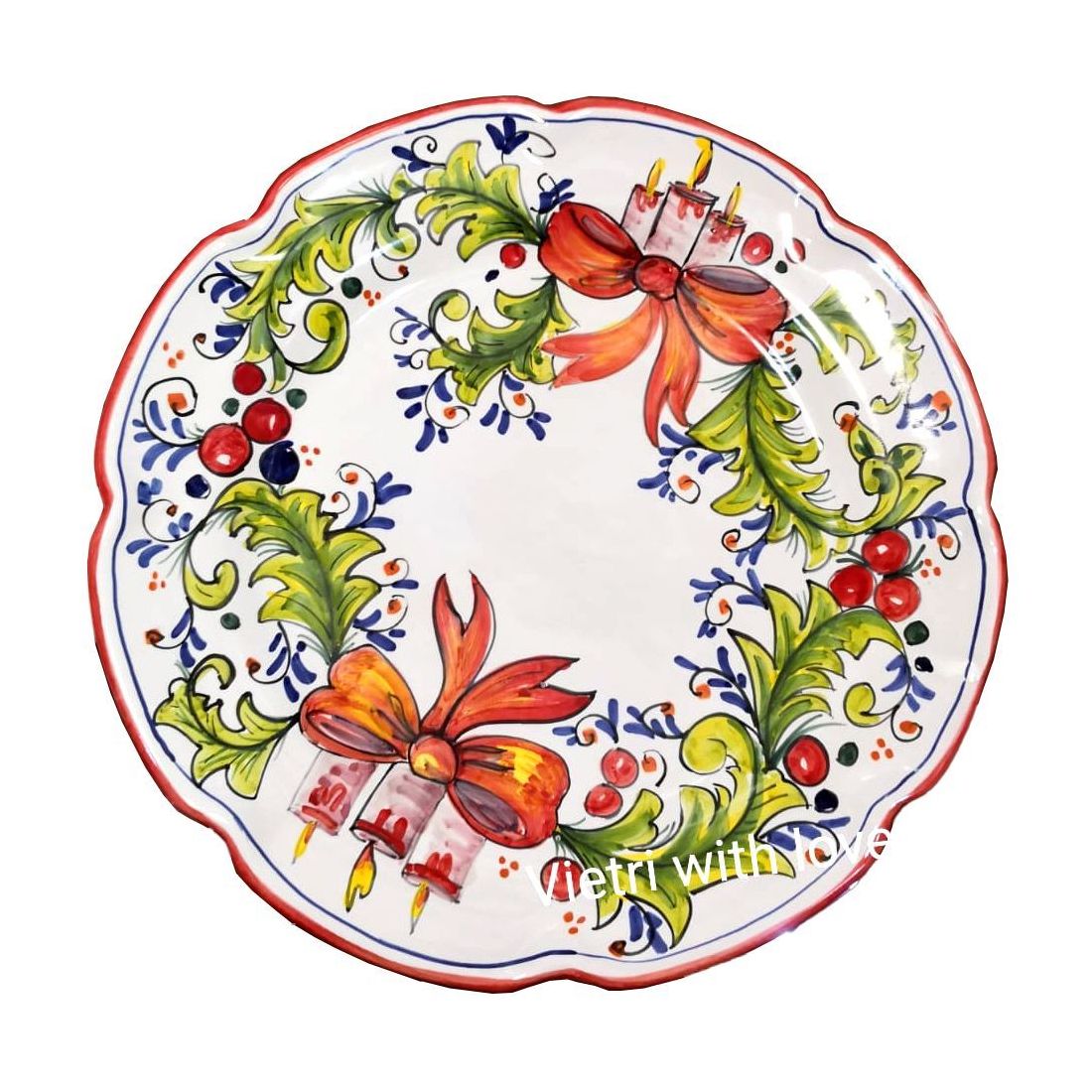 High-quality Vietri ceramic, enriched with an elegant Christmas design, entirely hand-crafted and hand-painted by master artisans who have preserved the Vietri ceramic tradition for genera-tions.
