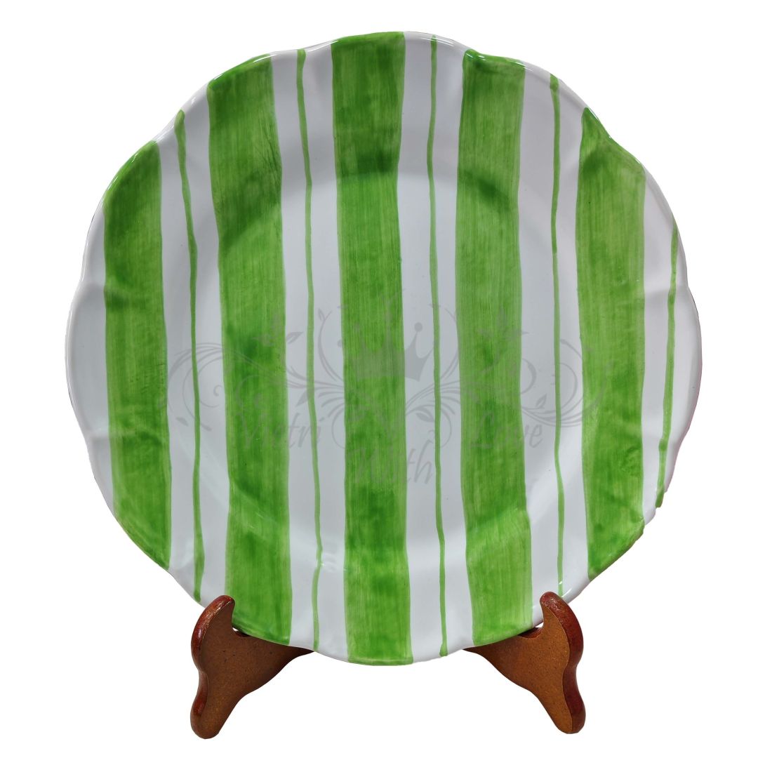 Oval scalloped serving plate. Stripes line. Vietri ceramic. Hand-painted.