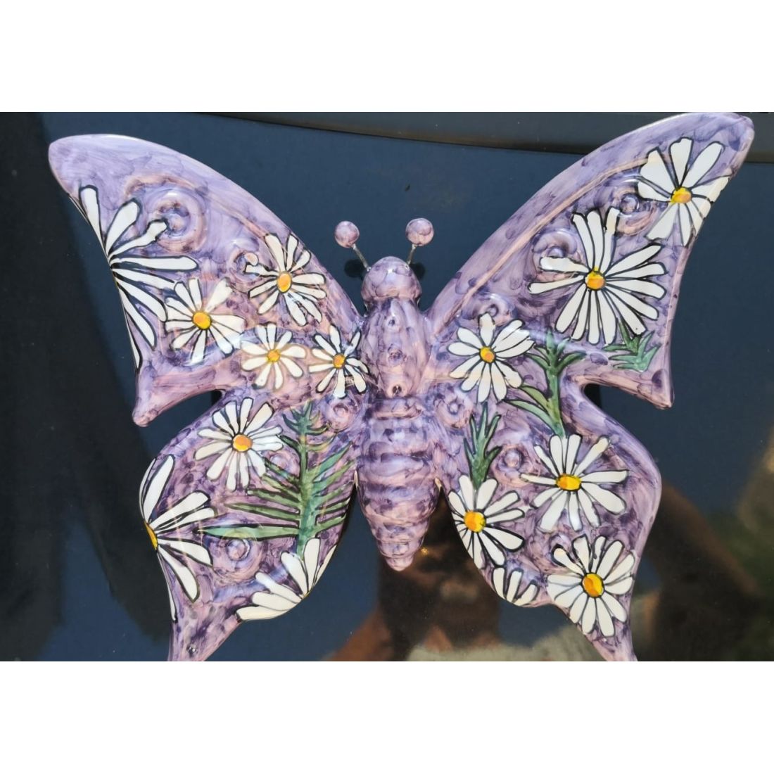 Butterfly light violet daisy line handpainted Vietri ceramic