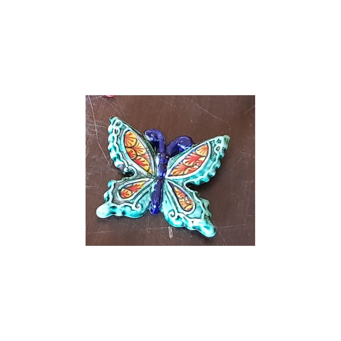 Colorful butterfly Copper green background handpainted Vietri ceramic