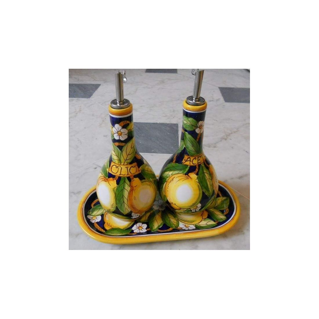 Ambientar el aceite y el vinagre de decoración de limones. Cerámica Vietri pintada a mano