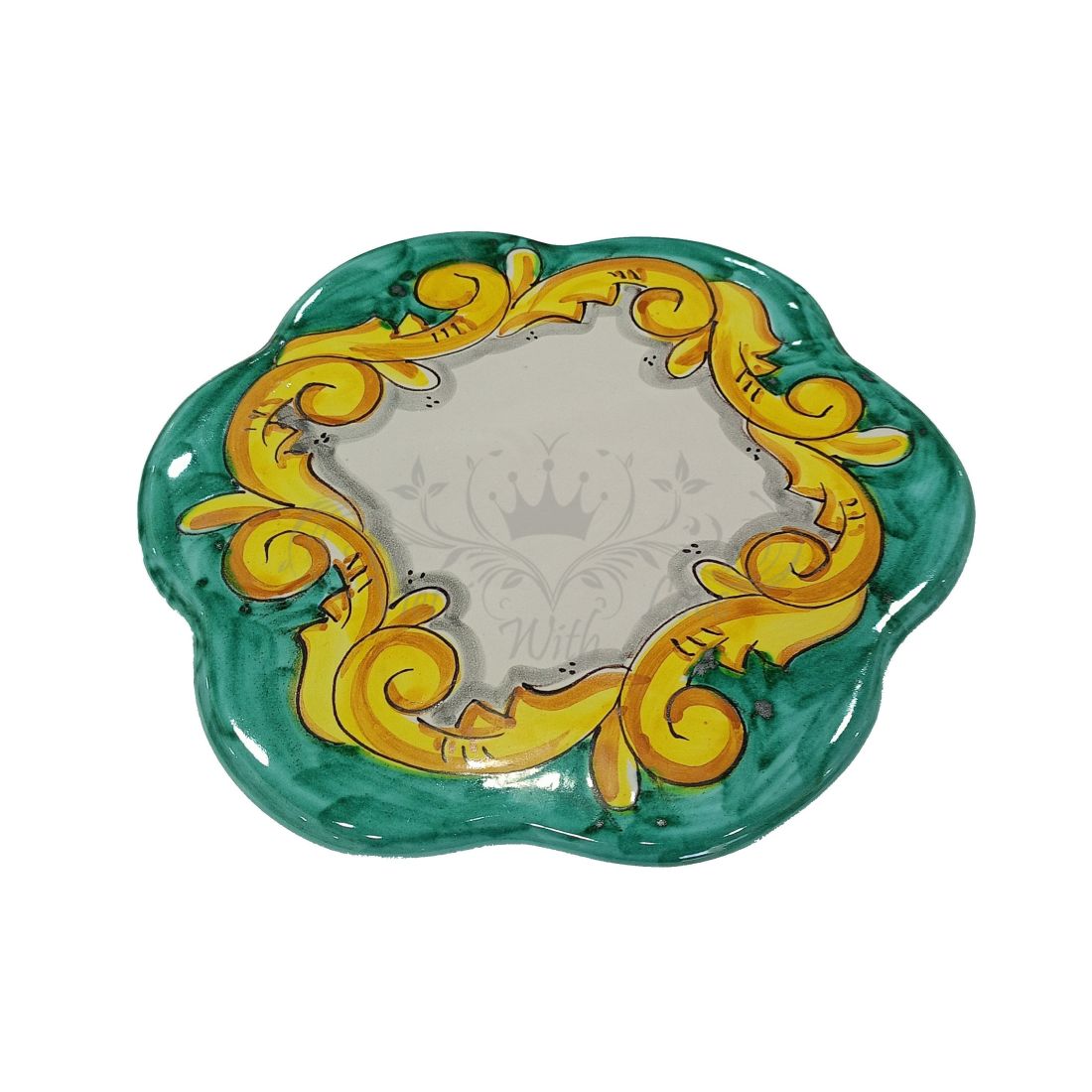 Bolsillos vacíos de línea barroca verde ramina. Cerámica Vietri pintada a mano.