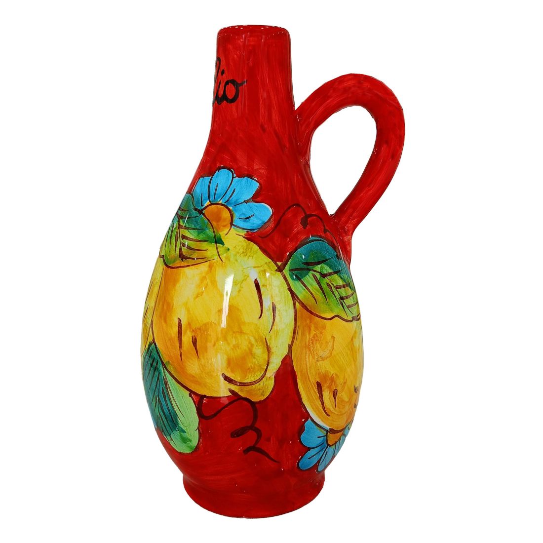 Aceitera Vinagre botella Vinagre línea Limones y Flores. Cerámica de Vietri pintada a mano.