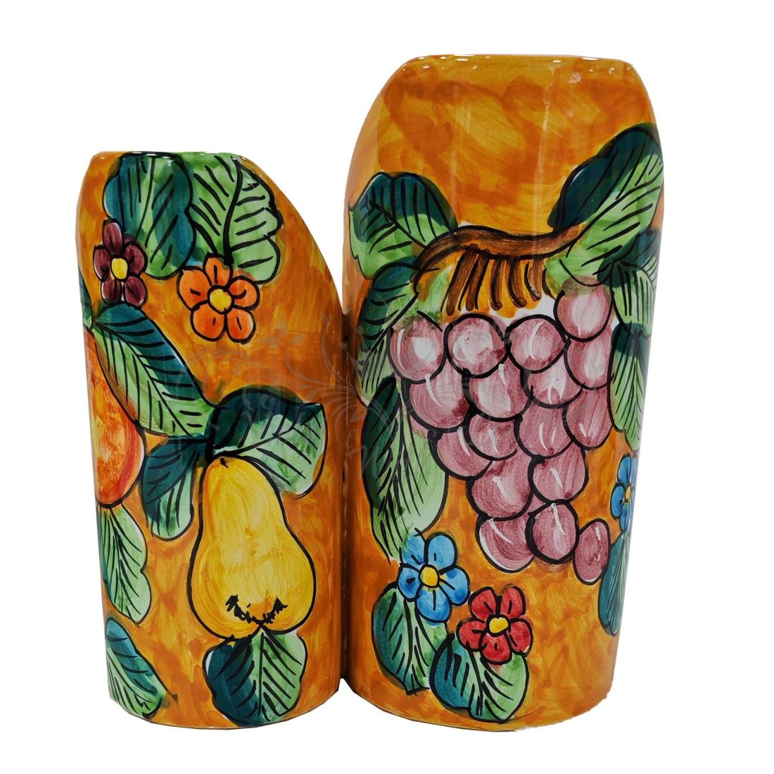 Portacopas doble. Línea de frutas. Cerámica de Vietri pintada a mano
