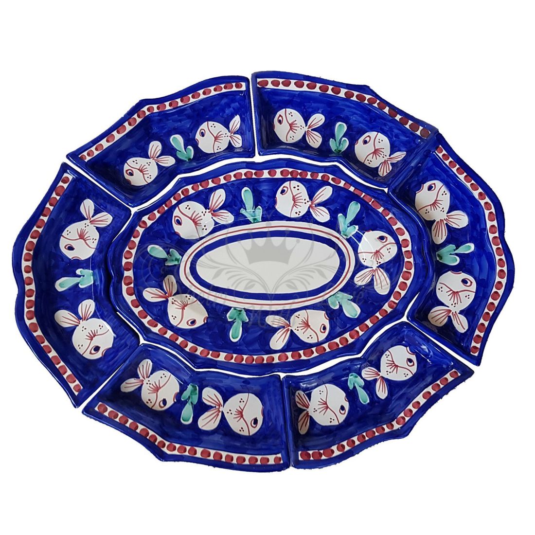 Set de aperitivo. Cena fría. 7 piezas. Línea Animalitos. Cerámica Vietri. Pintado a mano.