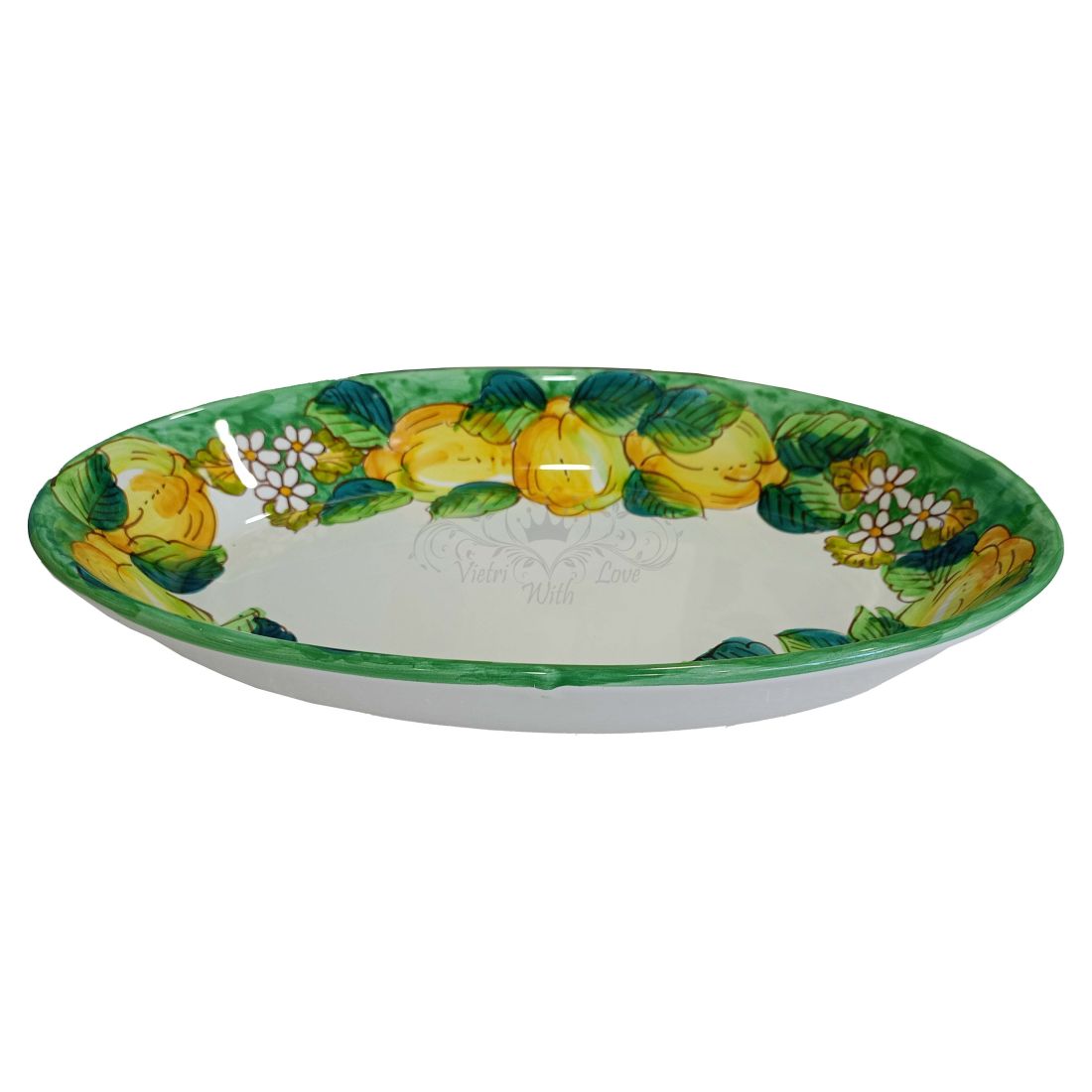 Fuente ovalada tipo cuenco. Plato de servir. Línea Limones y Azahares. Cerámica de Vietri. Pintado a mano.