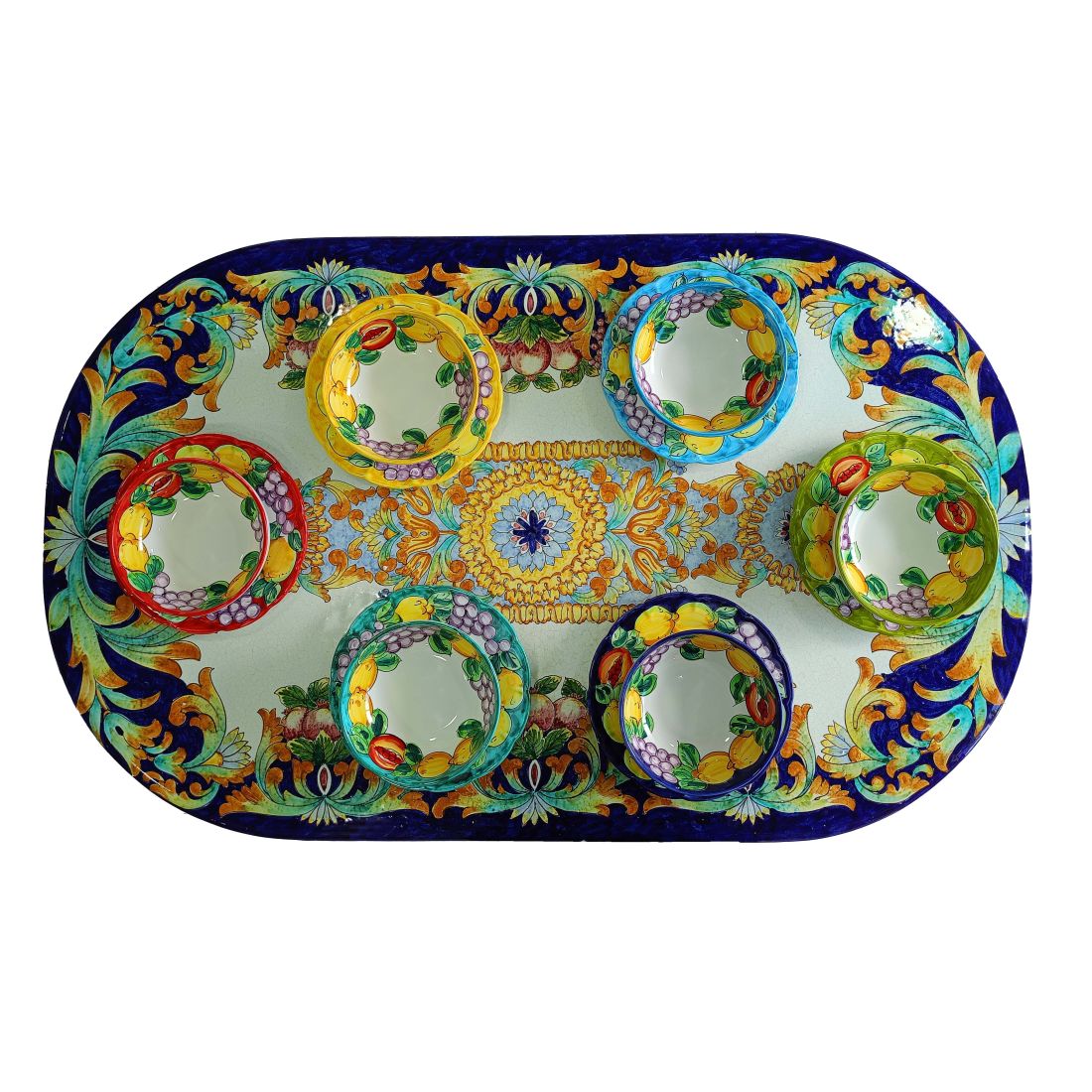 Plato bandeja ovalado con borde. Línea Frutas. Cerámica Vietri pintada a mano.