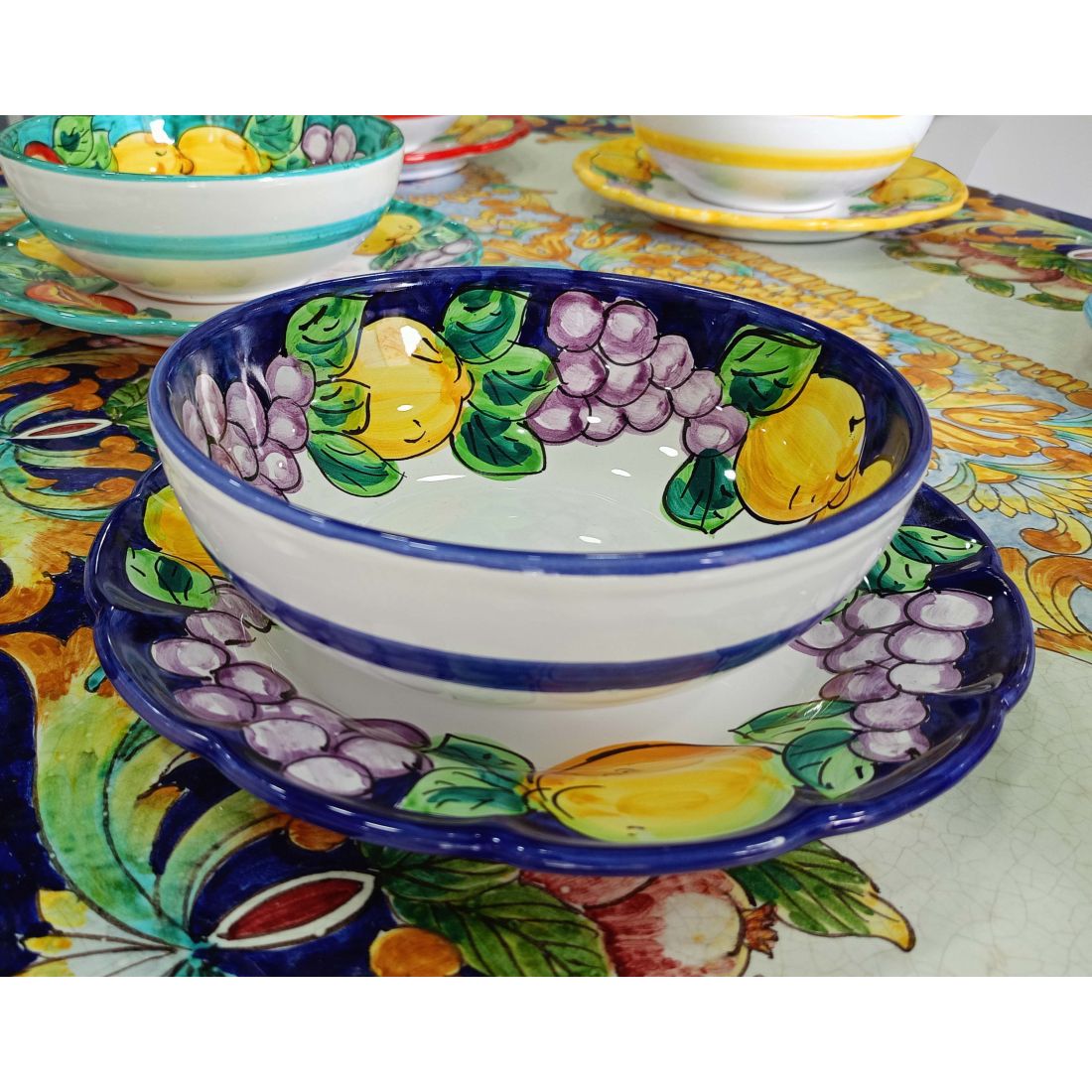 Juego de platos línea limón y frutas pintados a mano. Cerámica Vietri