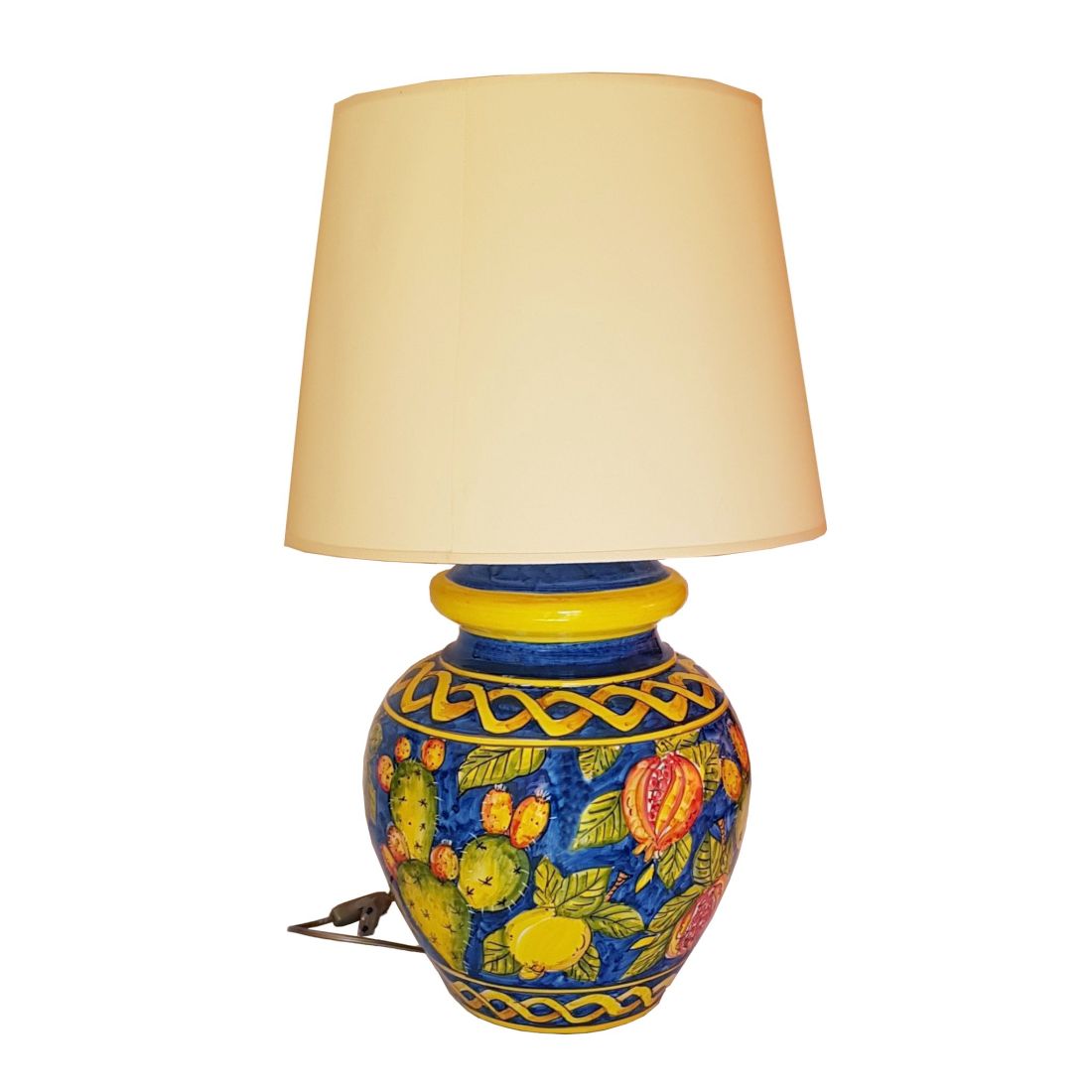 Decoración de lámpara fondo de fruta azul. Cerámica Vietri pintada a mano.