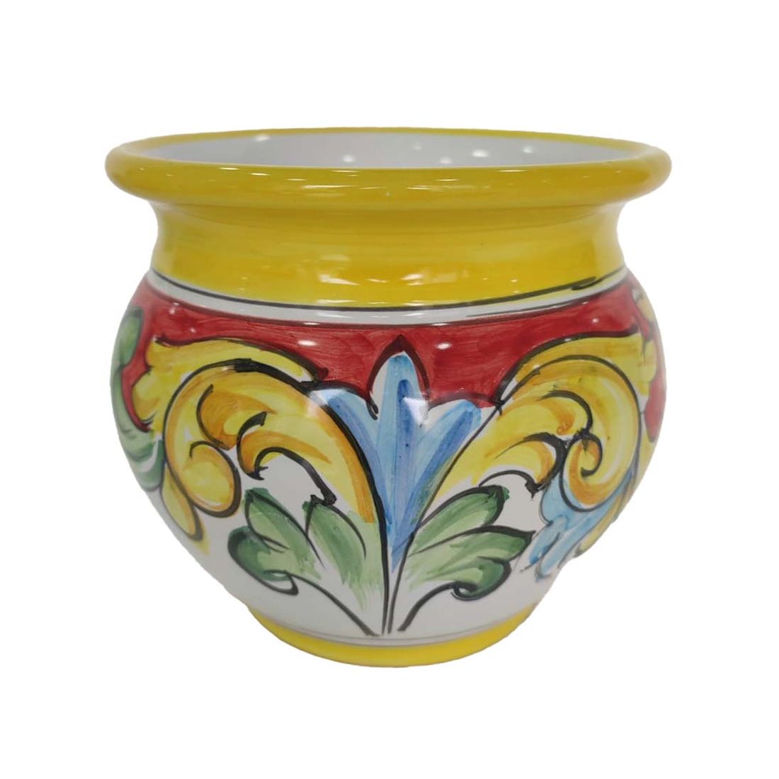 Maceta con soporte para plantas. Cerámica de Vietri pintada a mano.
