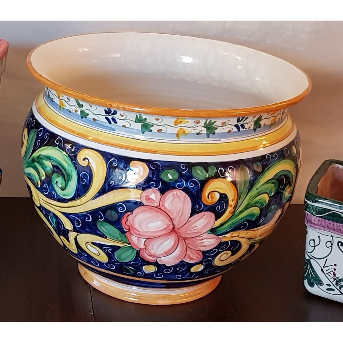 Cachepot Decoración floral del portaplantas. Cerámica Vietri pintada a mano.